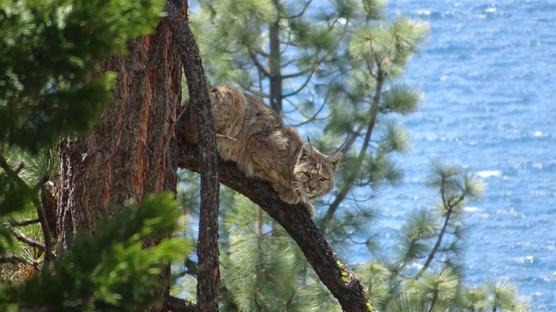 Was hatten wir denn da. Lag da ein Luchs im Baum. Es war reiner Zufall dass meine Frau ihn gesichtet hatte. Er war so unauffällig und eins mit dem Baum. Er war nicht zu erkennen. Bestimmt beobachtete er uns schon eine ganze Weile. Eine tolle Begegnung, einen Luchs in freier Wildbahn sieht man nicht jeden Tag.