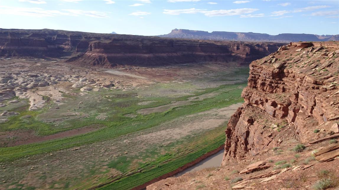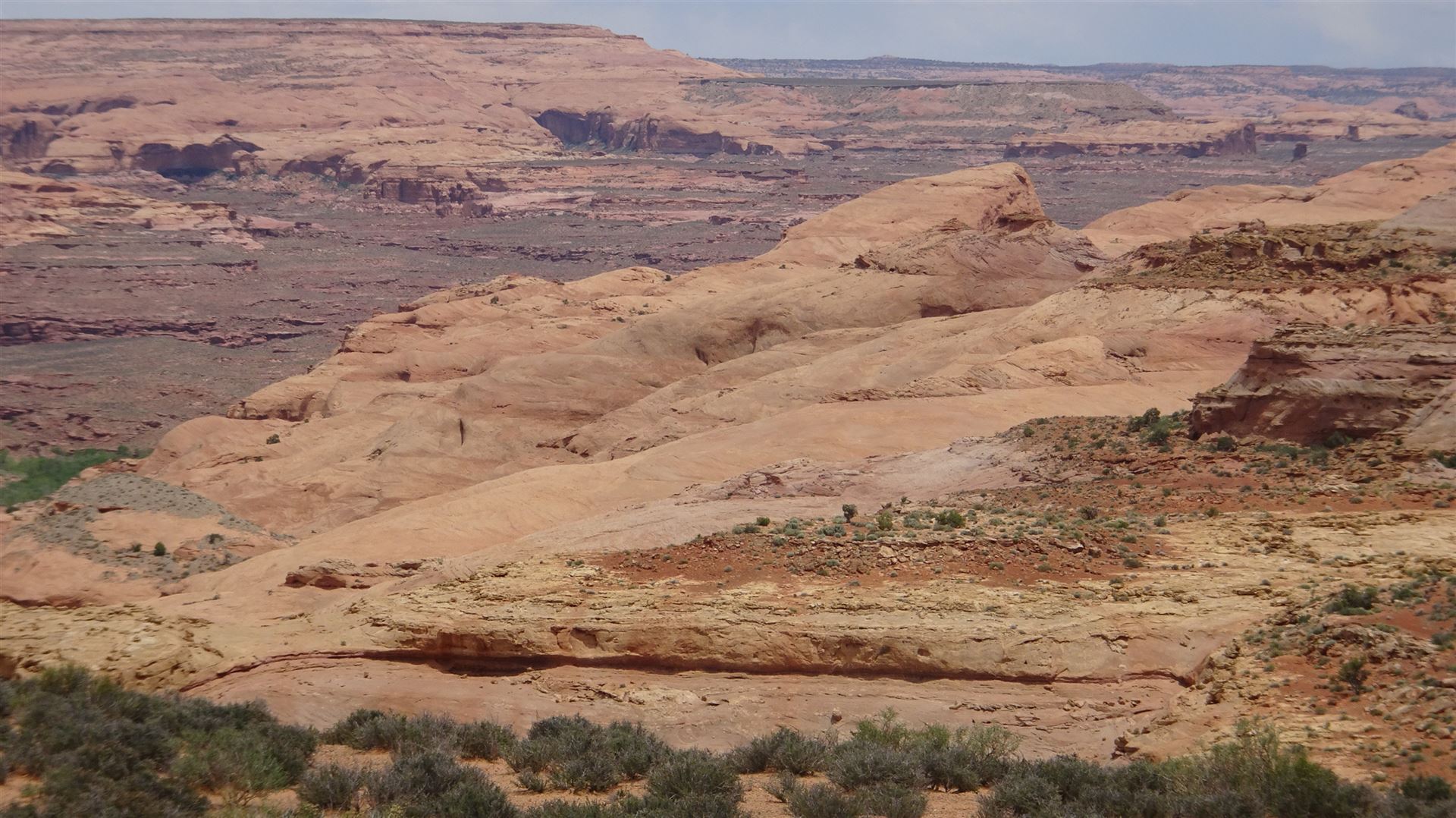 Ein letzter Blick auf unsere Nächtigungsstelle vom Hite-Overlook aus. Das Wetter schien auch heute Widergutmachung anzustreben. Das geht einem doch das Herz auf.