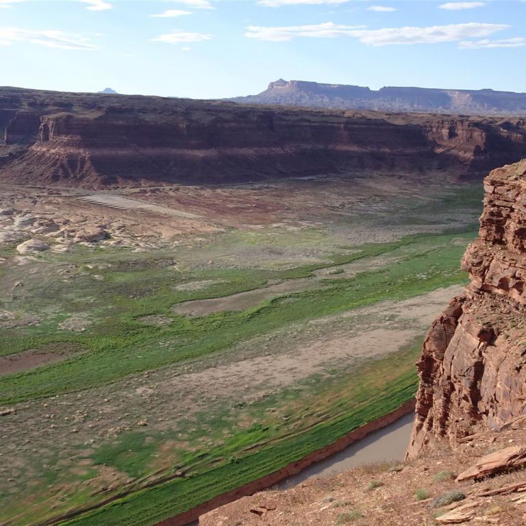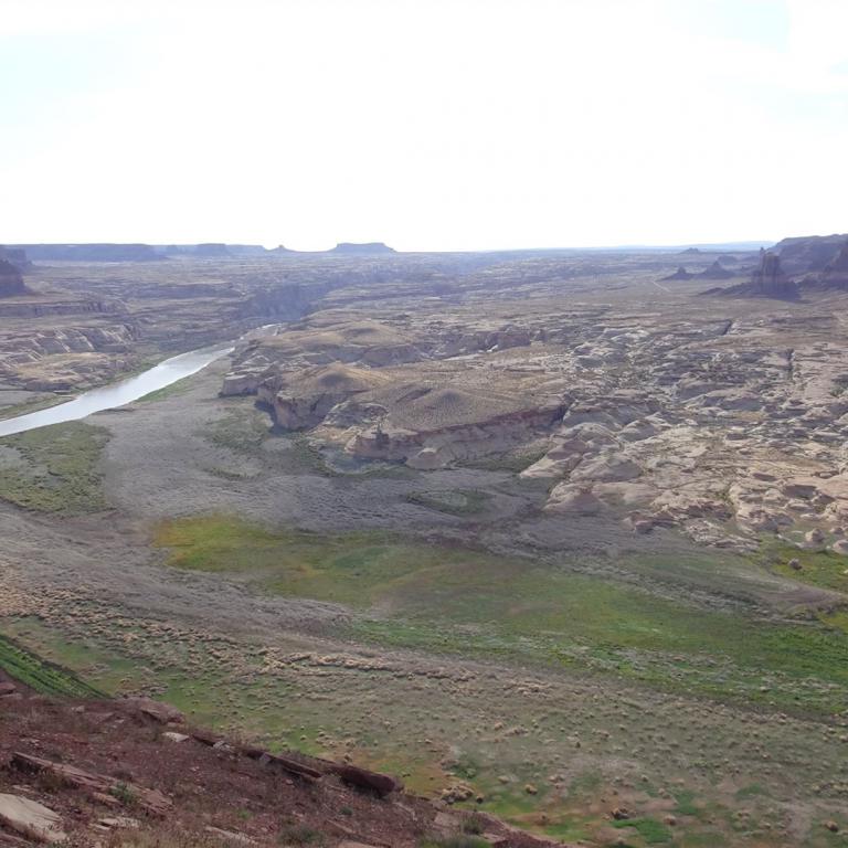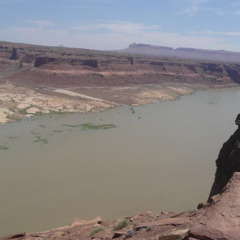 Wie bereits gestern erwähnt, mit See ist hier in Hite nicht weit her. Der Colorado hat sich trotz seiner momentanen Wassermassen in seinen natürlichen Lauf zurückgezogen. Ich hab mal ein paar Vergleichsfotos aus dem Jahre 2008 herausgesucht. Für was alles so Reiseberichte doch gut sind.