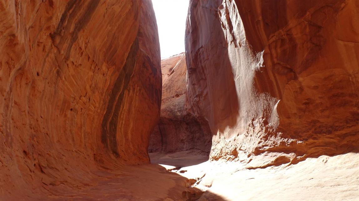 Kurze Funfakt zum Leprechaun Canyon. Als ich ihn im Jahre 2008 zum ersten Mal bewandern wollte, fand ich ihn nicht. 2013 mit meinem Sohn auf der Father and Son-Tour fand ich ihn dann ohne Probleme und fragte mich damals schon, wie konnte ich beim ersten Mal nur so dumm gewesen sein. Er ist nämlich eigentlich gar nicht zu verfehlen. Heute dann sah ich woran ich damals scheiterte. Ich ging einfach den falschen Canyon entlang. Einen halben Kilometer vor dem eigentlichen Trailhead geht auch ein Weg von der Straße ab. Scheinbar halfen uns damals die Koordinaten nicht so richtig weiter oder das GPS war falsch eingestellt. Die Moral von der Geschichte, Vorbereitung ist die halbe Miete.