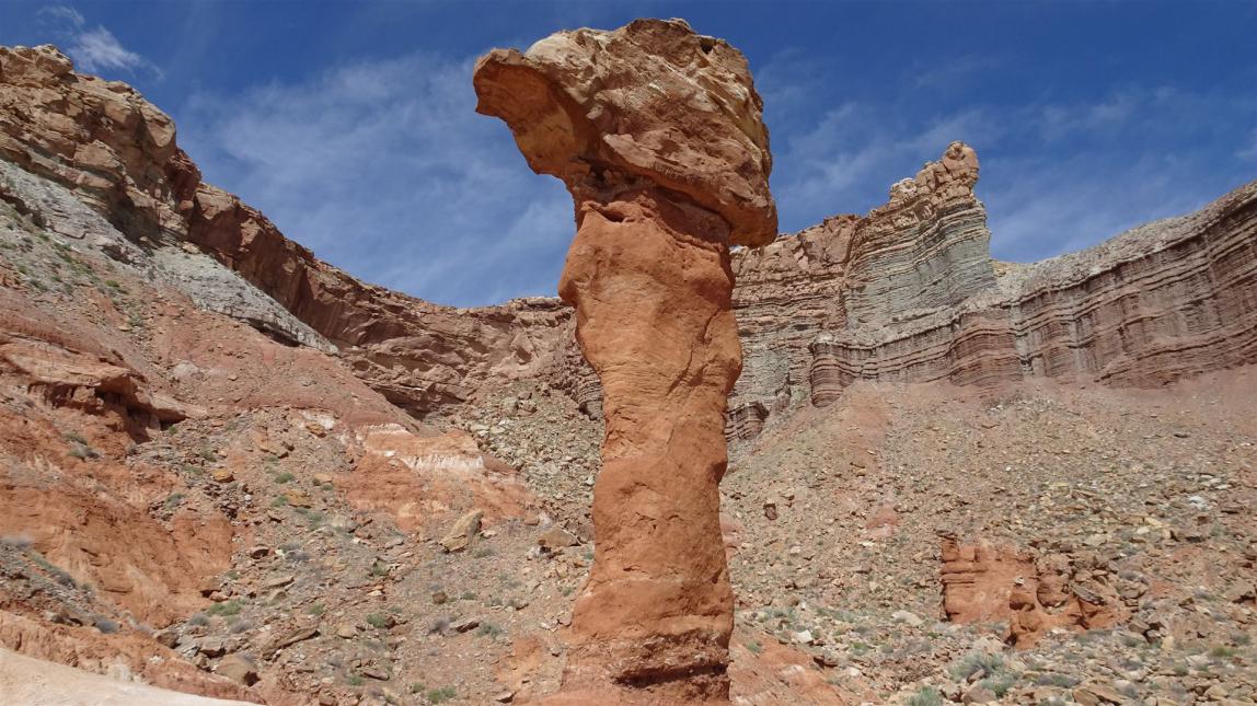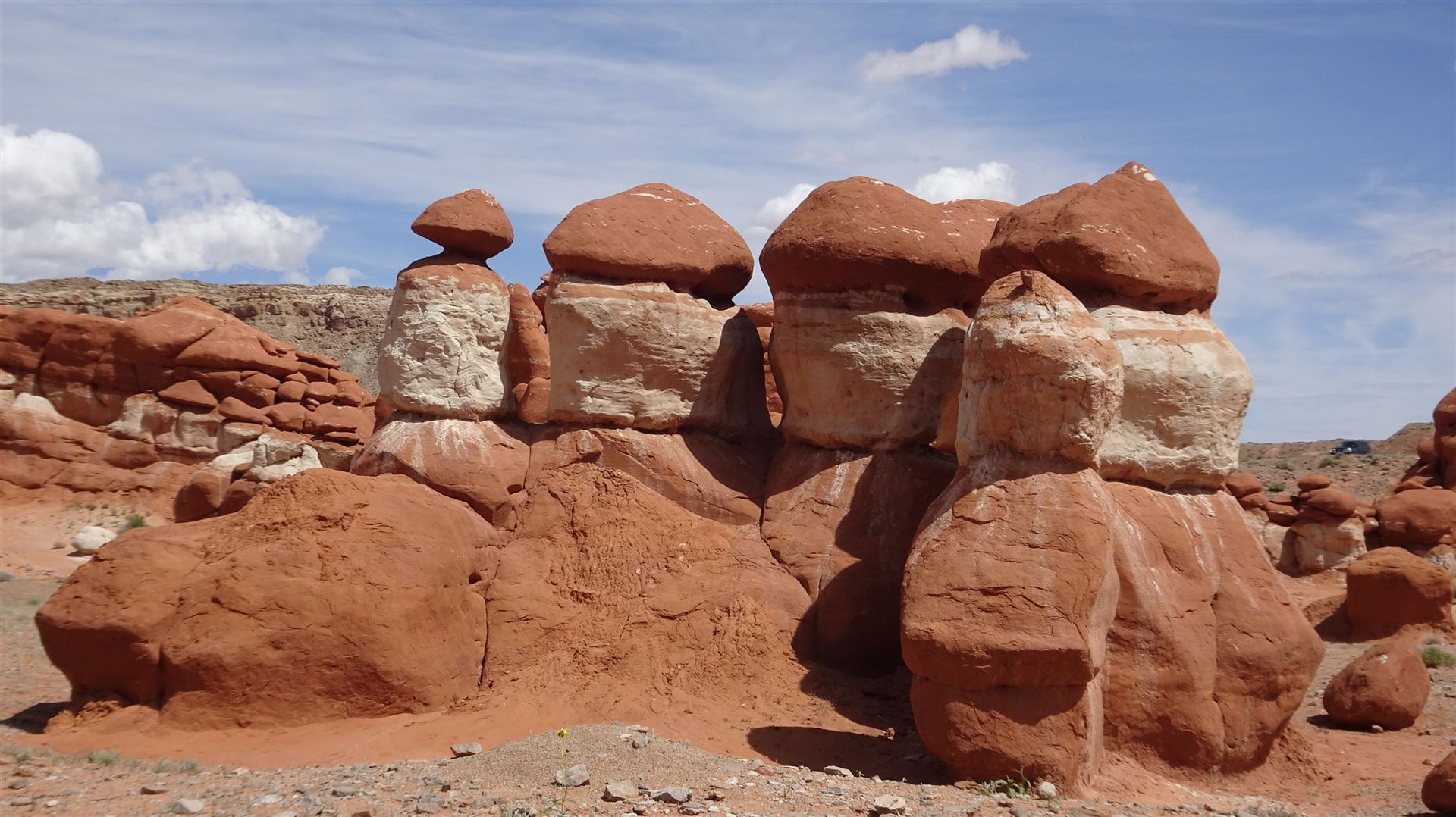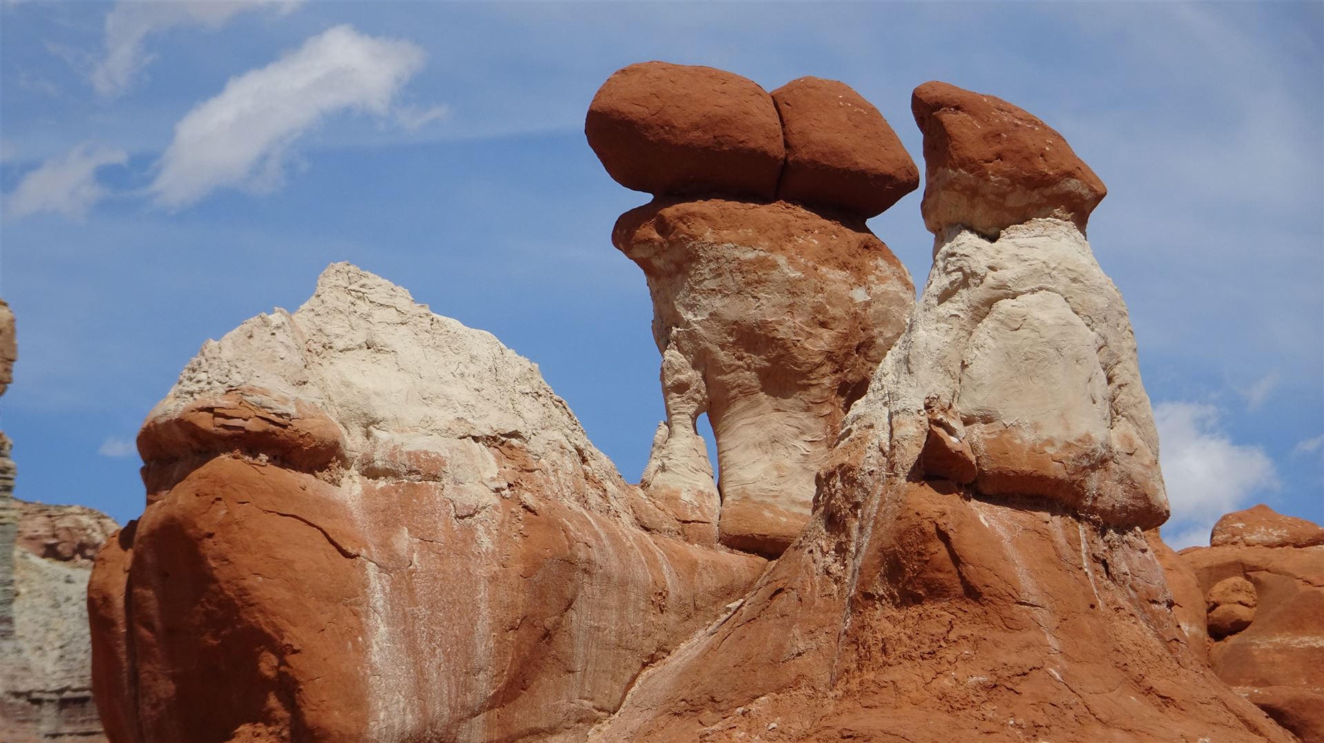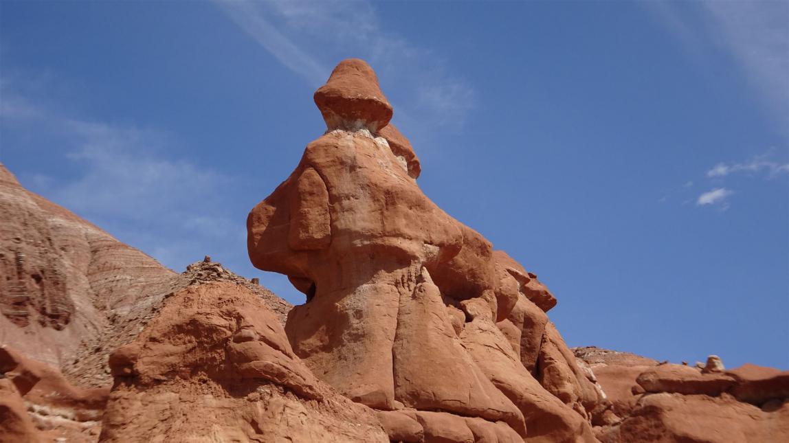 Wir arbeiteten uns durch das Gebiet, schauten uns dieses und jenes an. Man könnte Stunden damit verbringen in den Steinformationen Tiere, Menschen oder sonstiges aus der Fabelwelt zu entdecken. Natürlich hat das Gebiet nicht die Größe des Goblin Valleys, aber uns hat es dennoch sehr gut gefallen.