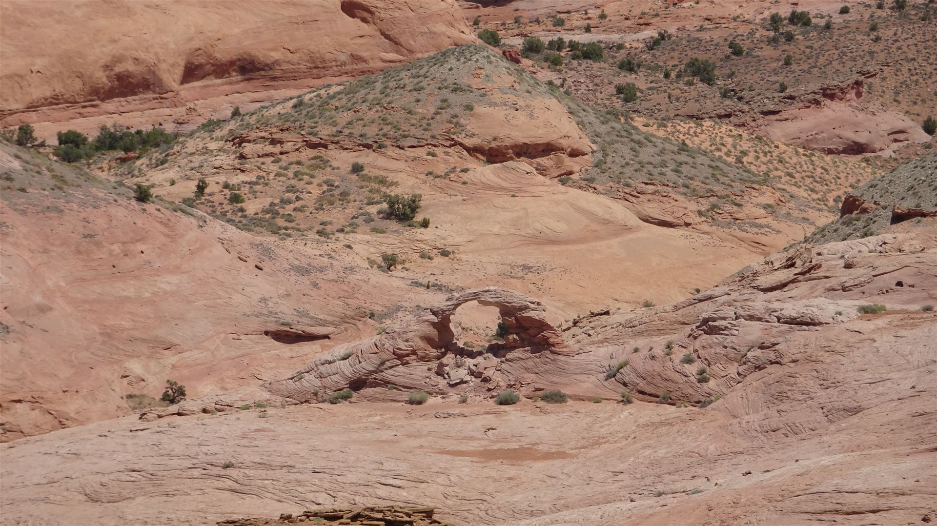 Der Blick auf den Arch war aber trotzdem sehr schön und auch die Landschaft hat hier etwas beruhigendes. Wer sich also den ganzen Weg sparen will, wir hätten eine Alternative. Außerdem gebe es noch eine zweite Alternative und dabei müsste man nicht mal aus dem Auto aussteigen. Bereits von der Dirtroad aus nach ca. 4 Meilen Anfahrt kann man den Arch sehen. Man muss natürlich wissen wo er ist. Aber mit ein wenig Suchen bekommt man das schon hin.