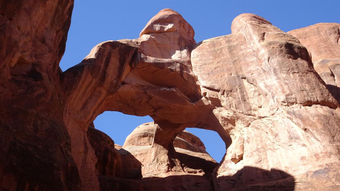 Es macht wahnsinnigen Spaß in diesem Gebiet herumzulaufen. Zur besseren Orientierung hat man kleine Pfeile an Weggabelungen angebracht. Allerdings darf, soll und muss man auch immer einmal die Pfeile Pfeile sein lassen und Seitenarme abseits des Weges erkunden. Auf diese Weise findet man z.B. den Skull Arch. Ein Arch, der hoch über einem drohnt und den man leicht verfehlen könnte, falls man immer unbeirrt den Pfeilen folgen sollte.