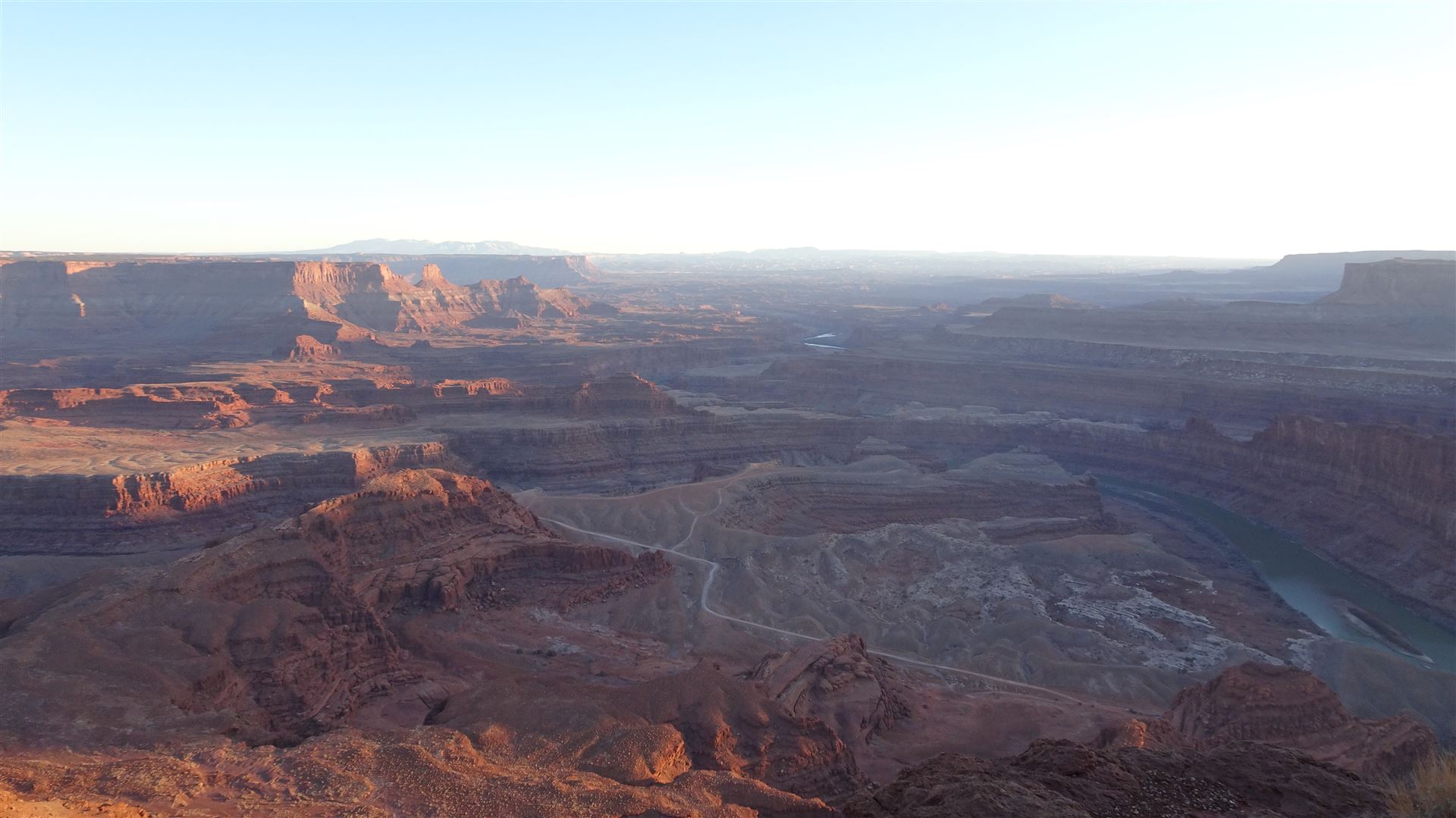 Zum Abschluss des Tages fuhren wir noch zum Dead Horse State Park. Die Aussicht von dort oben finde ich immer wieder gut und kehre deshalb hierher immer wieder zurück. Das erste Mal hier oben waren wir auf unserem Honeymoon anno 94. Wir fütterten fahrlässig und jung wie wir waren ein paar Squirrels an und waren im Handumdrehen von gefühlt hunderten Squirrels umgeben. Flucht schien uns damals die beste Lösung zu sein.