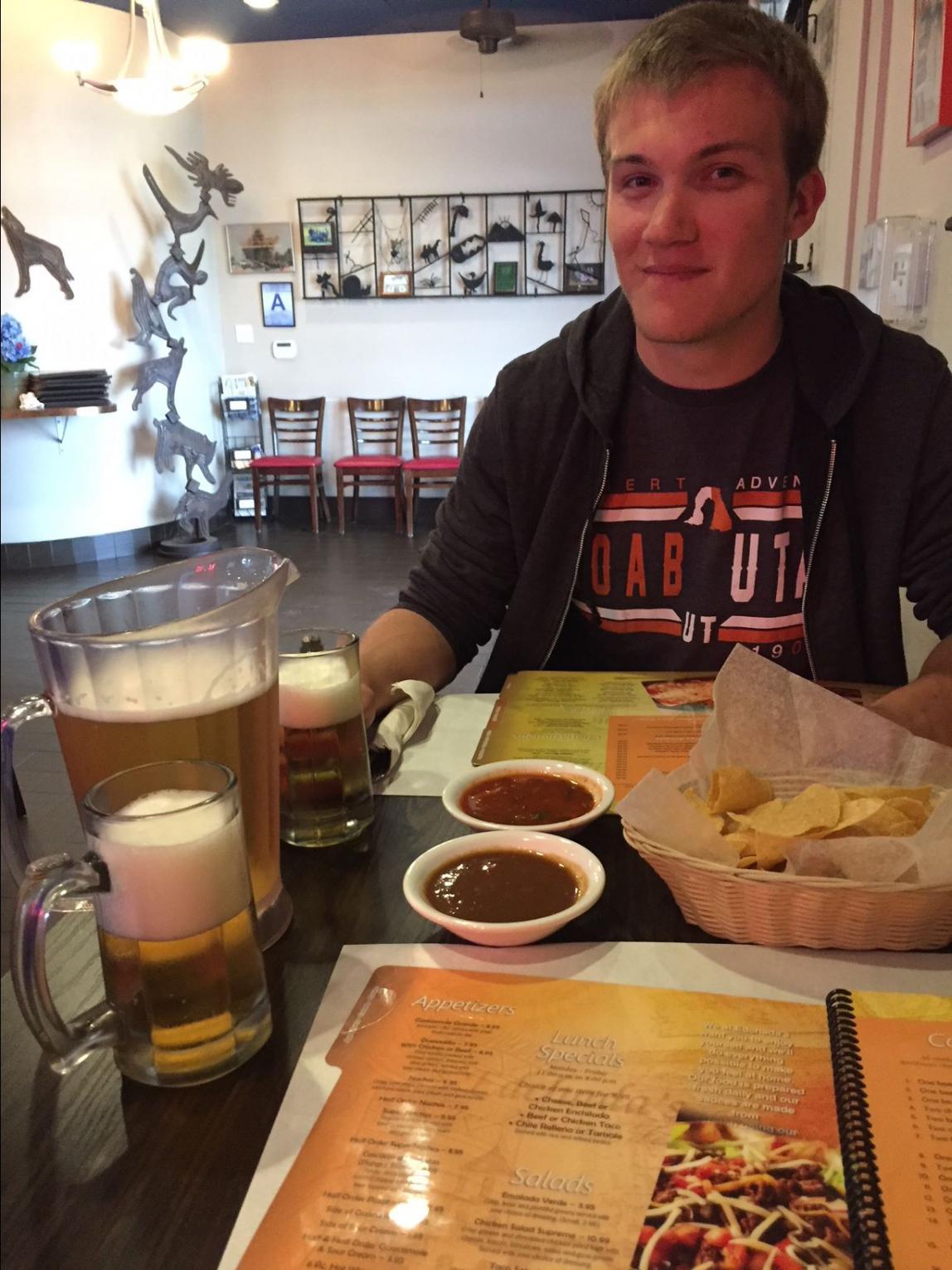 Twentynine Palms dagegen ist wieder ein richtiges Kaff. Wir waren froh, wieder aus der Stadt heraus zu sein. Aber wir hatten ja noch Hunger und bemühten TripAdvisor uns doch bitte das beste Esslokal der Stadt zu zeigen. Das Ergebnis war eine mexikanische Sportsbar, dessen Namen ich vergessen habe. Als wir eintraten, fragte uns die Kellnerin, ob wir an der Bar Platz nehmen wollten. Wollten wir. Die nächste Frage war die nach Getränken und weil die Gelegenheit günstig war, bestellten wir einen Pitcher voller Bier.