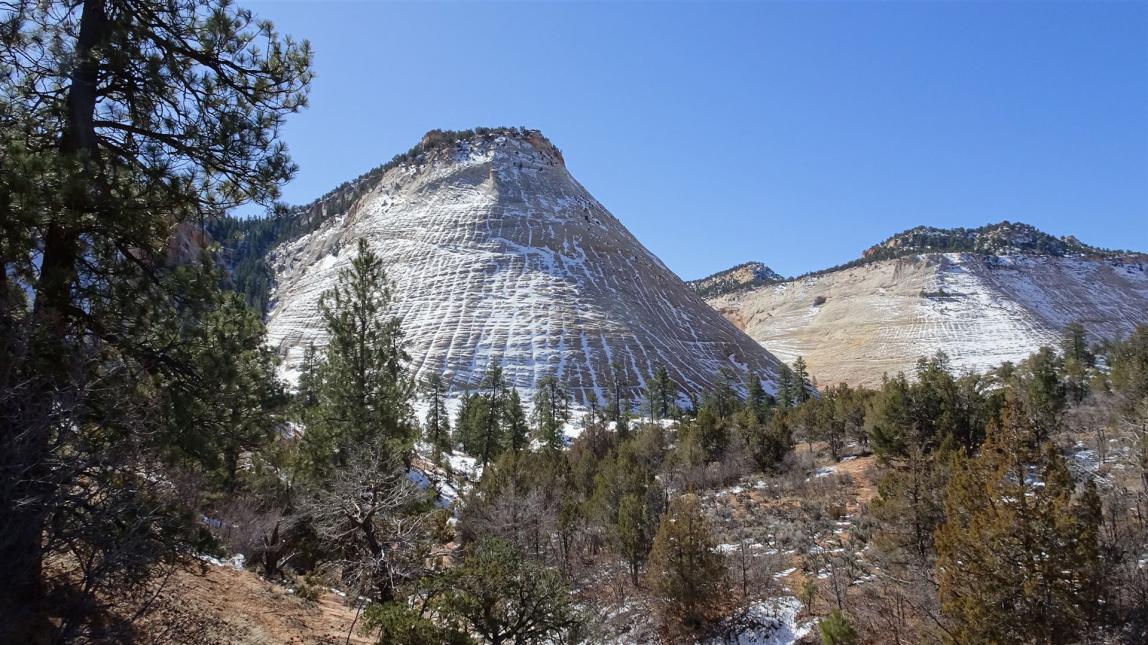 Der Vorteil, jetzt war ich wieder einigermaßen fit und konnte die Autofahrt durch den Zion Nationalpark auch wirklich genießen. Kurz vor dem Zion in dem Touristenörtchen Springdale wurde gerade die Straße erneuert und deshalb wurde schon weit vorher darauf hingewiesen, die Fahrt könnte sich ziehen. Tat sie dann auch, weil fast die komplette Strecke durch den Ort nur einspurig befahrbar war. An der Autoschlange, die sich in beide Richtungen bildete, war abzulesen, wie gut die Entscheidung war die Bauarbeiten jetzt im Februar in Angriff zu nehmen. Kaum auszudenken was in der High Season hier los gewesen wäre.
