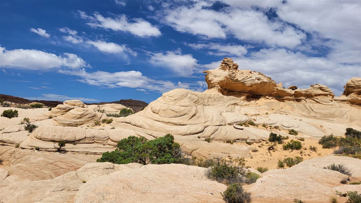 Heute haben wir einen quasi Ruhetag eingeschoben. Das Motel in Page bleibt unsere Ausruhestätte für 2 Nächte. Wir konnten heute Morgen etwas ausschlafen, schön gemütlich im Freien auf einer Terrasse frühstücken und dann uns eine Wanderung für den Tag heraussuchen. Die Wahl fiel auf die Thousand Pockets. Dazu muss man etwas offroadiger unterwegs sein, etwas durch die Walachei laufen und die Landschaft genießen. Genau das was uns gefällt. Der Rest vom Tag war dann wieder eher Ruhe angesagt. Ohne Filmen und nur zum Urlauben haben wir den Abend dann am Lake Powell verbracht. Ein toller und ruhiger Tag, den man auch während eines Roadtrips einmal durchaus einstreuen kann.